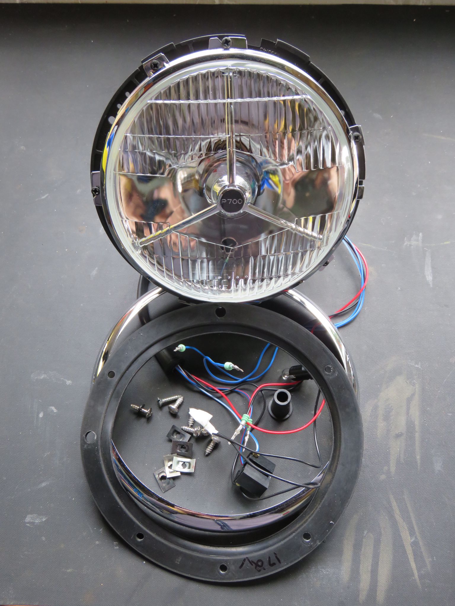 Tried fitting the rim, but I couldn't get it to go back enough. This was down to the fact that the headlight adjusters were fully extended. They needed to be further back, therefore drawing the headlight more into the bowl. Initially, they were set about 1½ cm away from the bowl, so a quick adjustment with a screwdriver to just over 1 cm and the rim slipped over nicely to where it was supposed to.