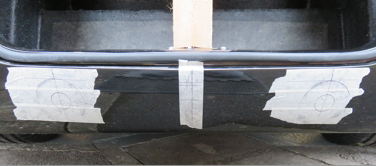 I placed the lights 21 cm from the centre line of the boot and 2 cm down from the lip. Also, I had to do a little bit of filing on one of the offsets as it didn't contour nicely to the body.
