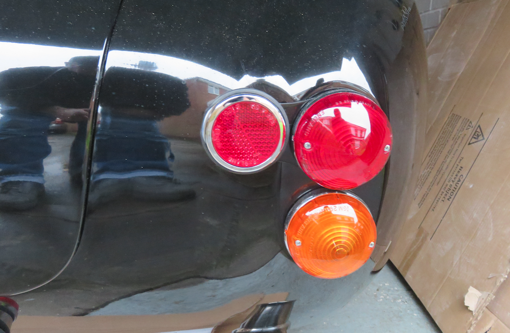 Rear reflectors are a requirement for IVA, but I decided not to drill the bodywork and interfere with the gelcoat, primarily because I couldn’t decide where to put them. So I mounted them on a couple of aluminium brackets (painted black), and they were secured using the brake lights as a pressure-fixing point… And I have to admit, they also look quite neat