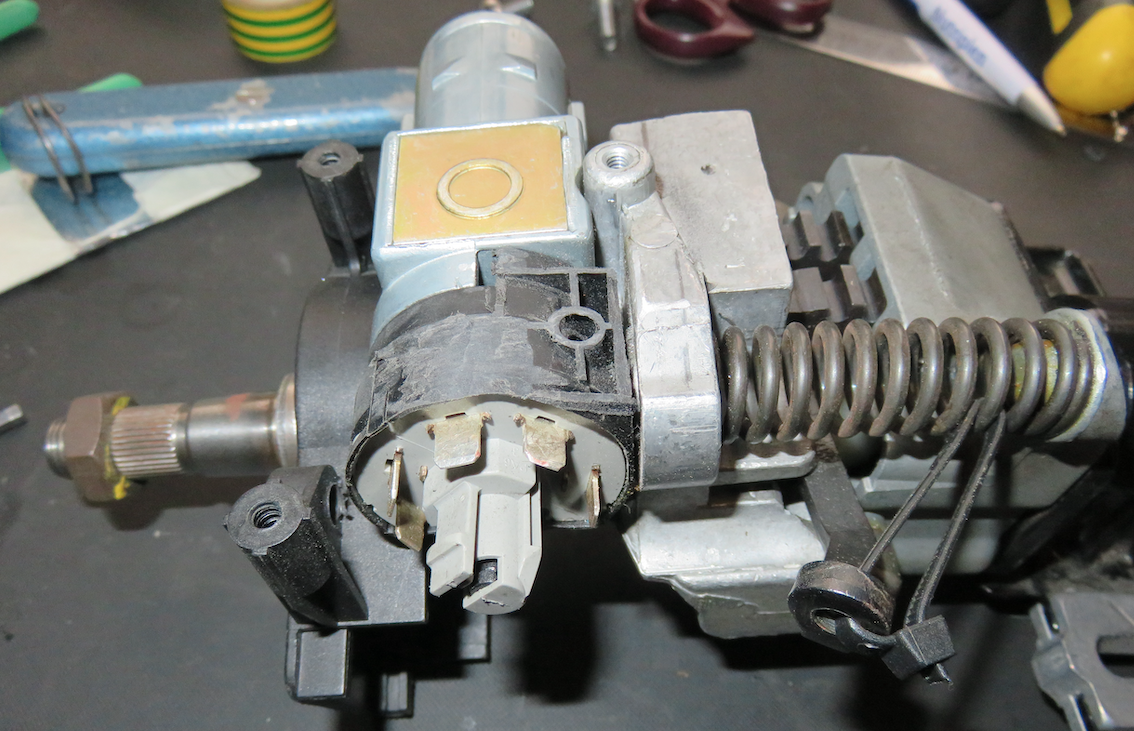 The problem was. On the underside of the ignition key cylinder, just by the brass steering locking mechanism cover, there was some excess plastic and a protruding bolt-casting on the steering column that, in a previous life, supported something meaningful. However, these are not necessary for my build, so I cut them off.