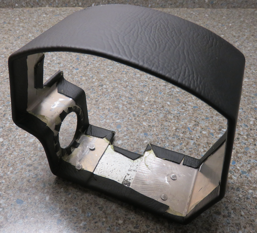 The steering wheel shroud was covered with the same vinyl as the dashboard. Quite a good exercise in fitting this, as there were a lot of curves, holes and fiddly bits.