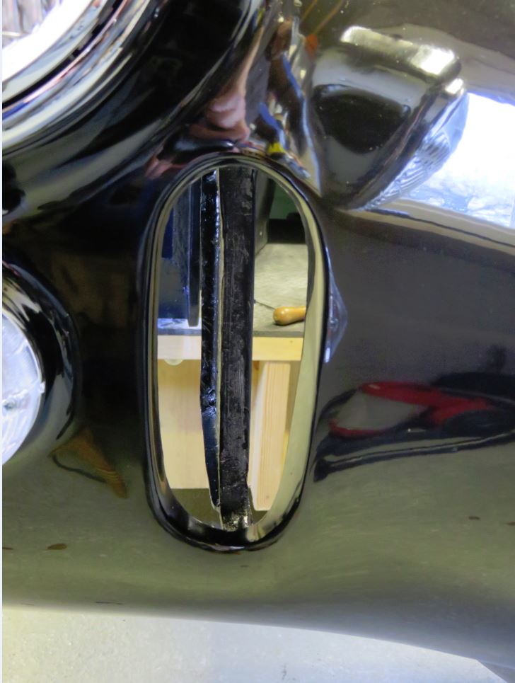 - Top of Door: Keyed the surface with a round file (as it's a convex area.) Then I slapped on a generous coating of my black brew with my [modified] paintbrush applicator. Not happy with my repair in this area, but it'll have to wait until spring. It's too cold now (Oct)